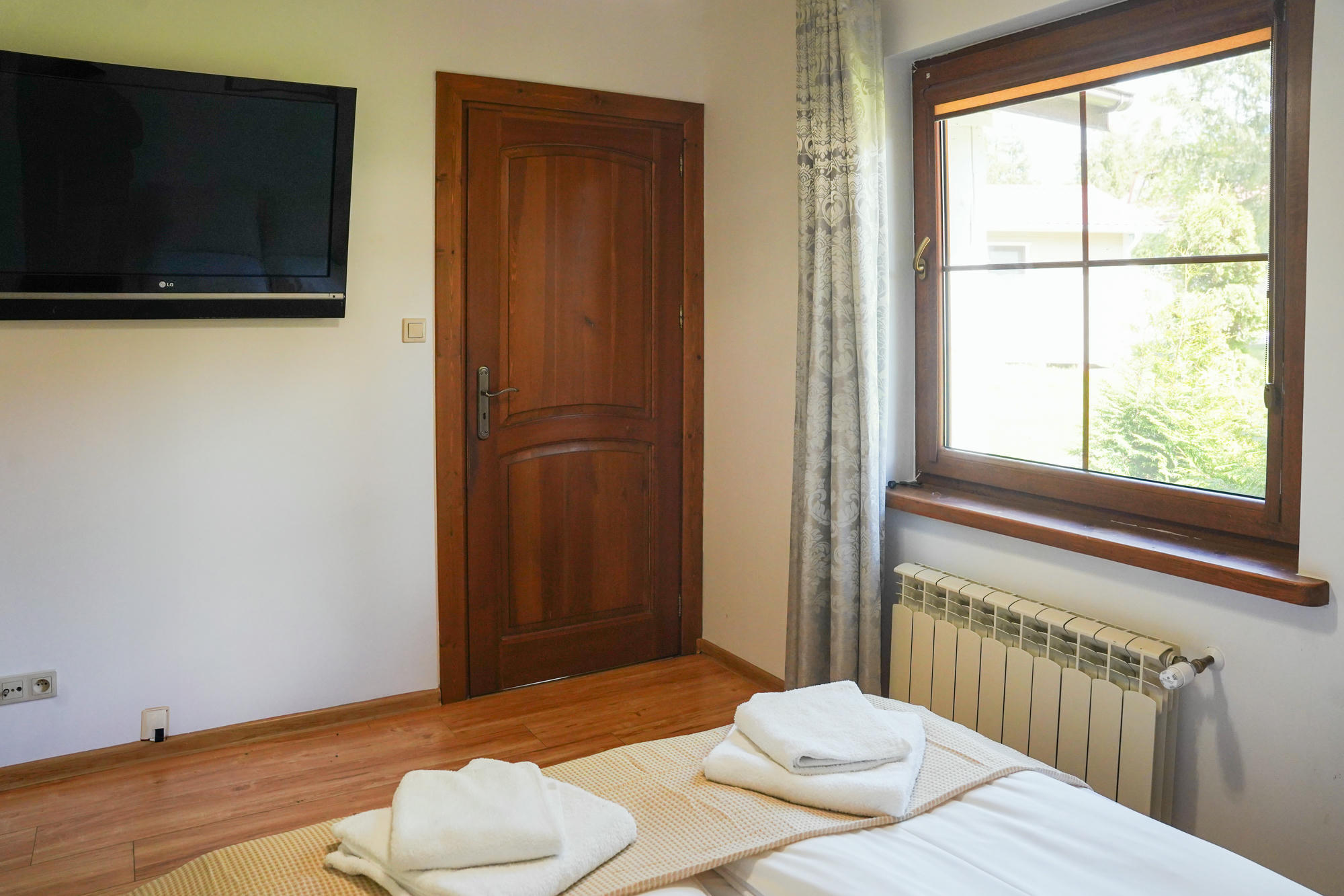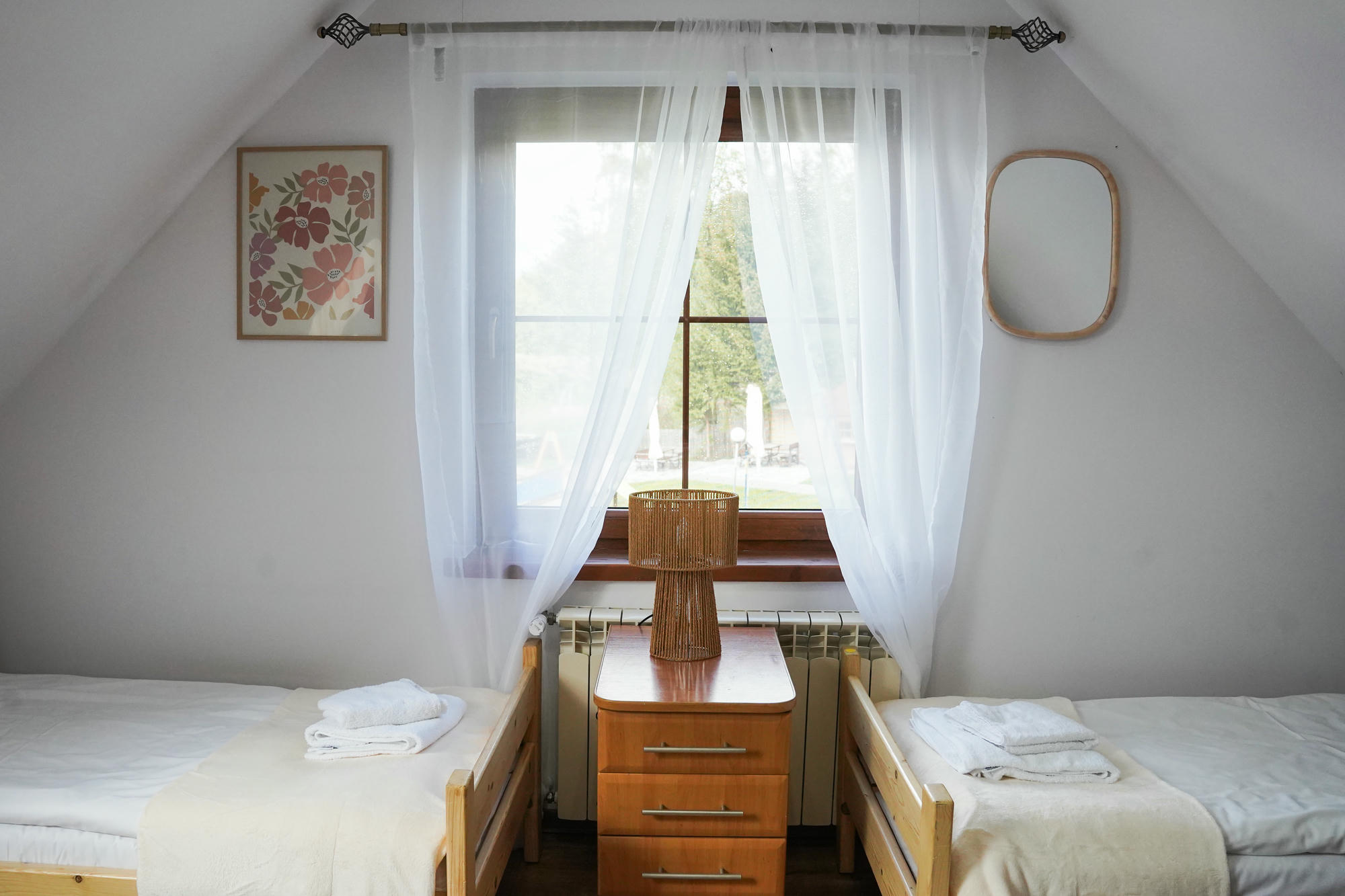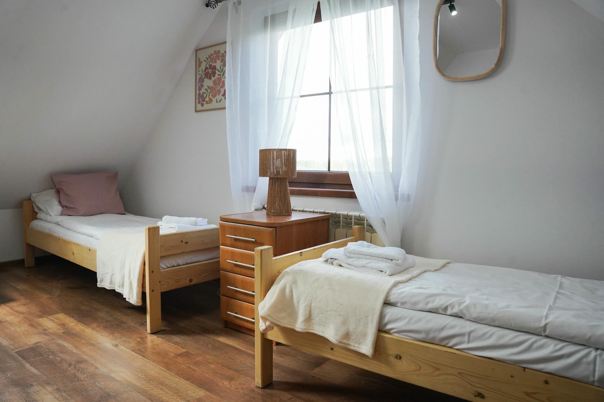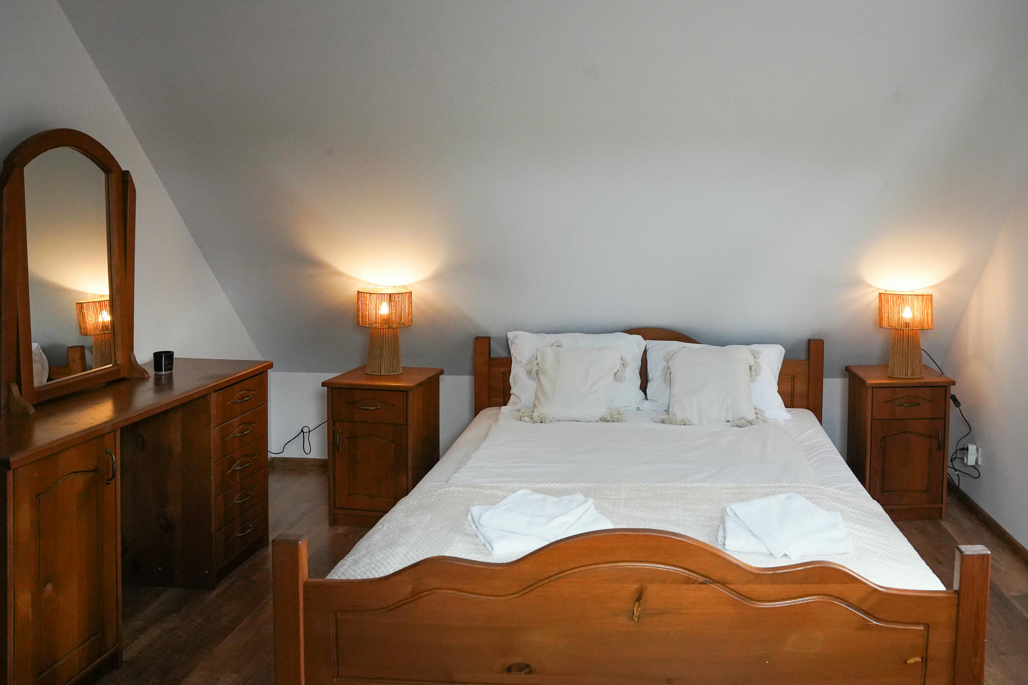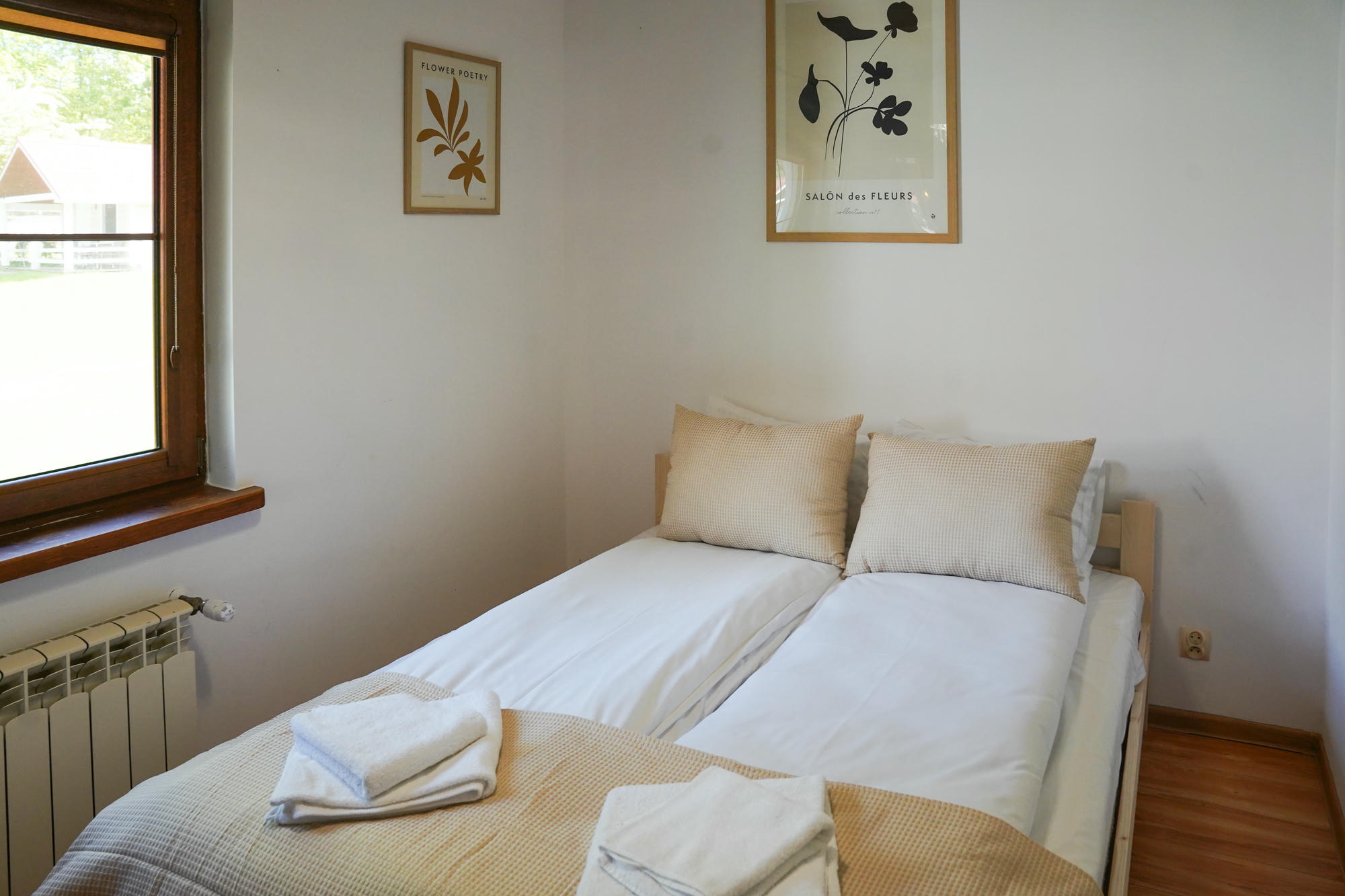 Lubimy zaskakiwać – i trzeba przyznać, że ostatnio wychodzi nam to całkiem nieźle! Oddajemy do Waszej dyspozycji nasz duży dom, idealny nawet dla 10 osób. Do dyspozycji gości są dwie sypialnie z podwójnymi łóżkami oraz jedna z pięcioma łóżkami pojedynczymi, toaleta na piętrze i przestronna łazienka z prysznicem oraz pralką na parterze. Wspólne chwile umili przestronny salon z wygodną kanapą i aneksem kuchennym, a prawdziwą perełką jest prywatny ogród z meblami ogrodowymi i bezpośrednim dostępem do jeziora. Brzmi dobrze? No ba! Teraz wystarczy tylko zarezerwować i cieszyć się mazurskim klimatem nad wodą.