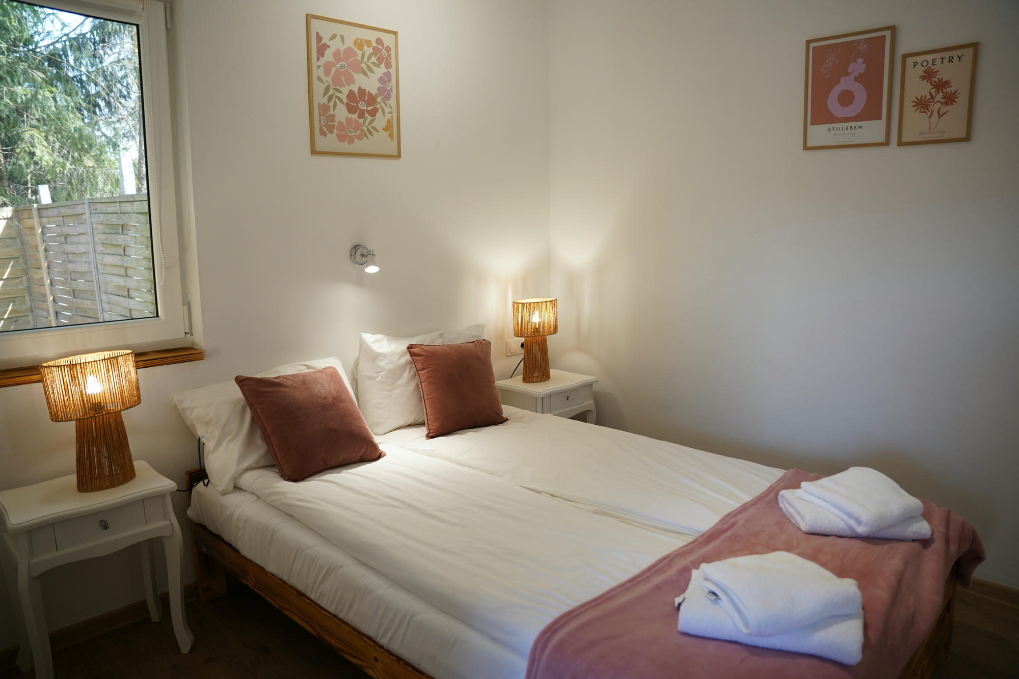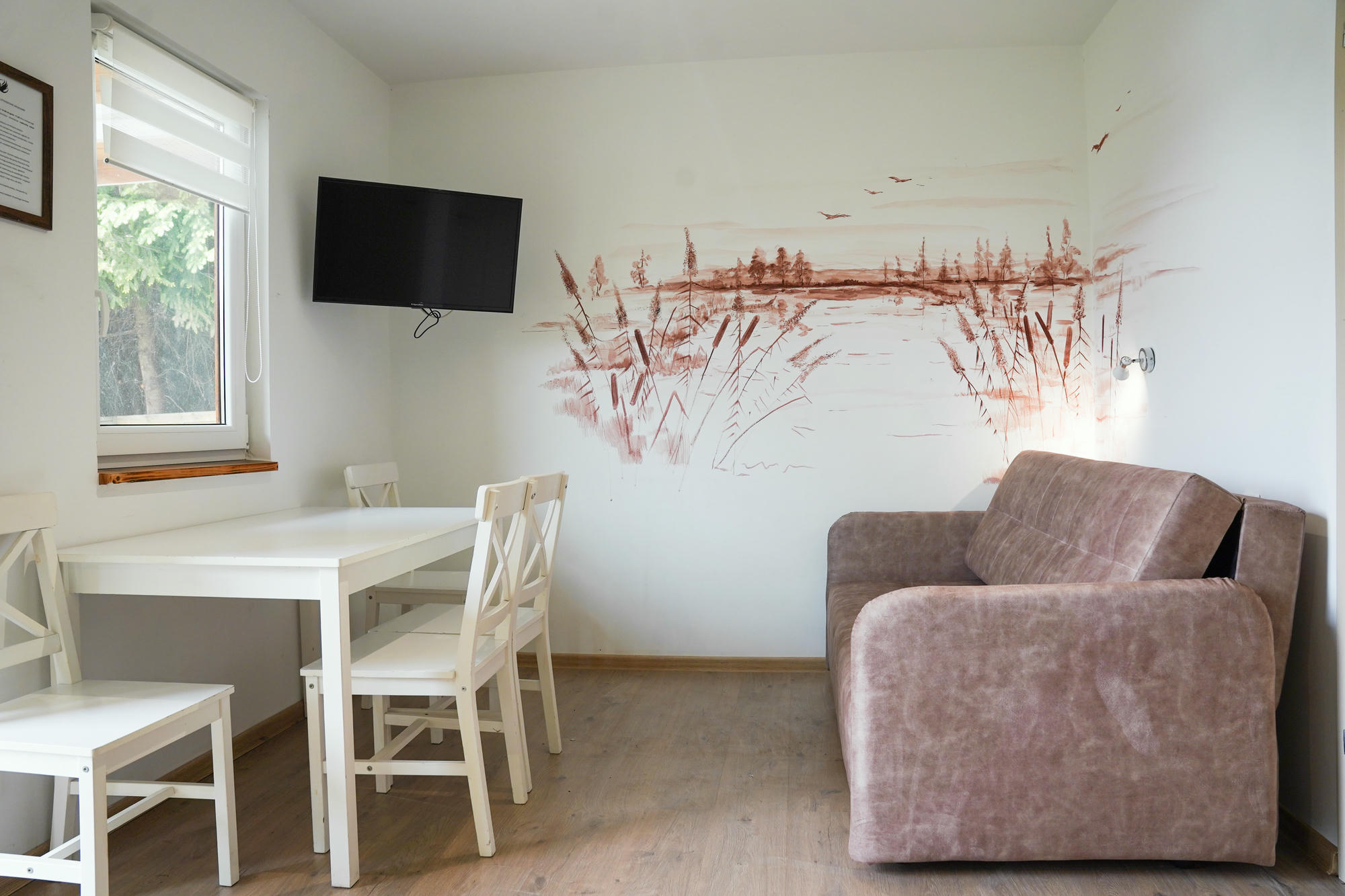 Domek 6-osobowy to idealna opcja dla większych rodzin lub grup przyjaciół, którzy pragną spędzić czas w mazurskim klimacie bez rezygnowania z wygody. W domku znajduje się telewizor z płaskim ekranem, WiFi, szafa oraz w pełni wyposażony aneks kuchenny z lodówką, płytą kuchenną, czajnikiem elektrycznym i kompletem przyborów kuchennych. Prywatna łazienka z prysznicem, pościel, ręczniki oraz system ogrzewania zapewniają wygodę niezależnie od pogody. Uzupełnieniem jest przestronny taras z meblami ogrodowymi, idealny do relaksu w otoczeniu natury. Domek jest wyposażony w prywatną balię.