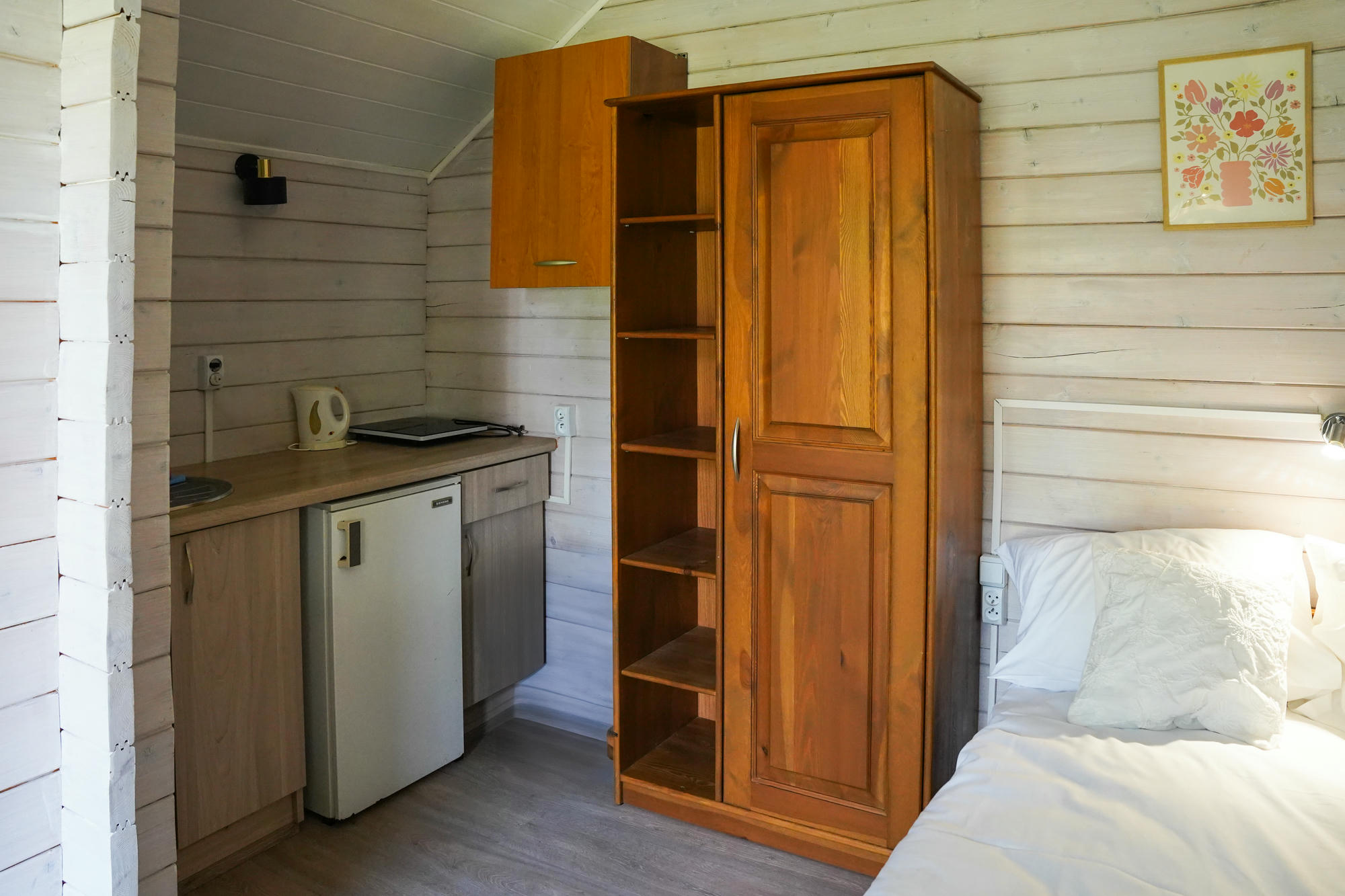 Domek 2-osobowy w Pensjonacie Wejsunek to doskonała propozycja dla par, które pragną odpocząć w spokojnej, mazurskiej scenerii. Wnętrze domku oferuje telewizor z płaskim ekranem, dostęp do WiFi, szafę oraz w pełni wyposażony aneks kuchenny z lodówką, płytą kuchenną, czajnikiem elektrycznym i niezbędnymi przyborami kuchennymi. Komfort zapewniają także prywatna łazienka z prysznicem, świeża pościel, ręczniki i ogrzewanie, co czyni domek idealnym miejscem do wypoczynku o każdej porze roku. Na zewnątrz znajduje się taras z meblami ogrodowymi – idealny do relaksu wśród natury.