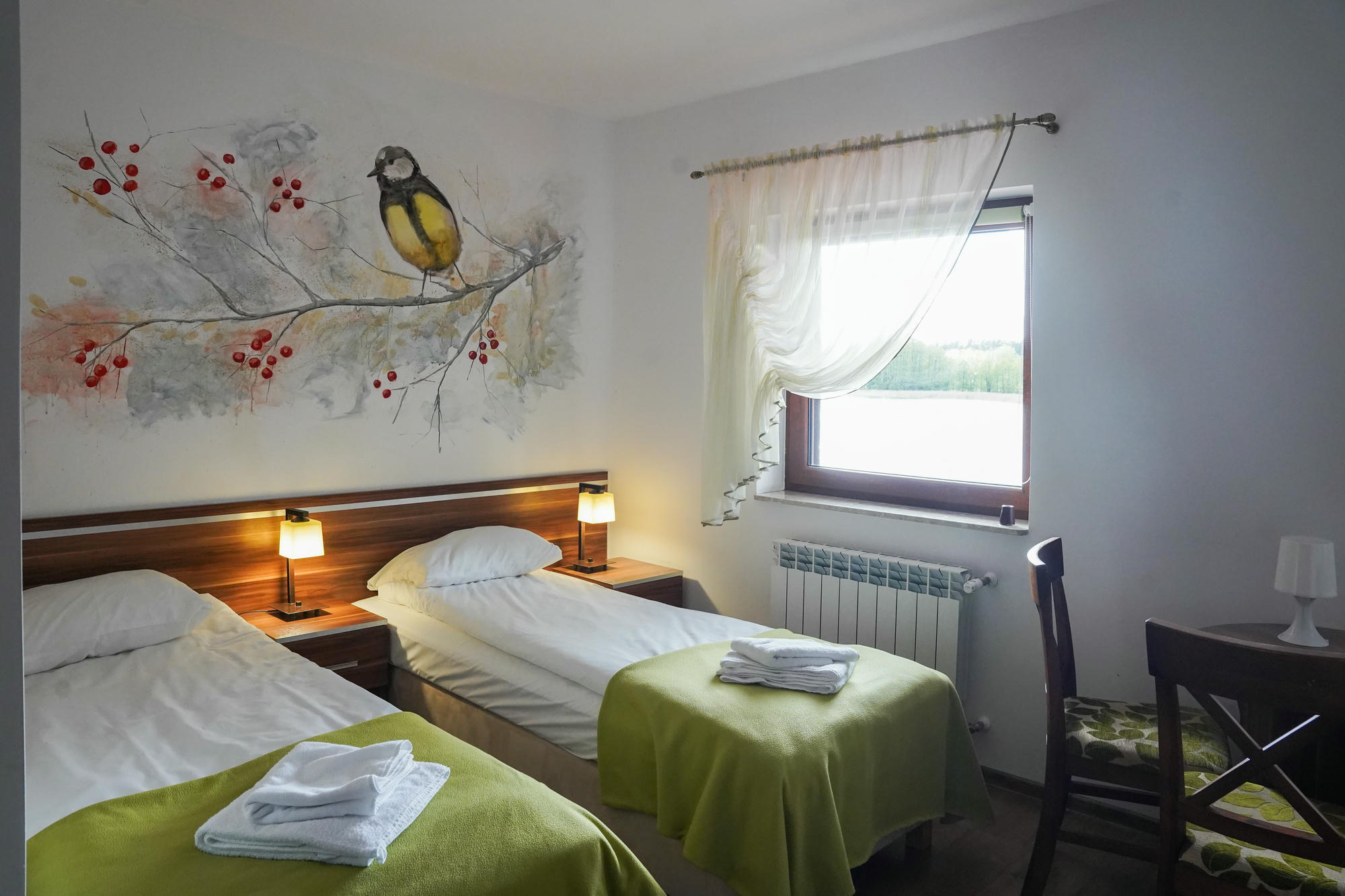 Pokój 3-osobowy w Pensjonacie Wejsunek to przestronna i funkcjonalna opcja idealna dla rodzin lub grupy przyjaciół szukających wygodnego noclegu w otoczeniu mazurskiej przyrody. Pokój został wyposażony w telewizor z płaskim ekranem i kanałami satelitarnymi, bezprzewodowy internet, praktyczną szafę na ubrania, a także lodówkę oraz zestaw do parzenia kawy i herbaty z czajnikiem elektrycznym – wszystko, co potrzebne, by poczuć się jak w domu. Prywatna łazienka z prysznicem, komplet świeżych ręczników i pościeli oraz niezależne ogrzewanie gwarantują komfort bez względu na porę roku. Dodatkowym atutem jest dostęp do bezpłatnego parkingu, co czyni ten wybór jeszcze bardziej praktycznym dla zmotoryzowanych gości.