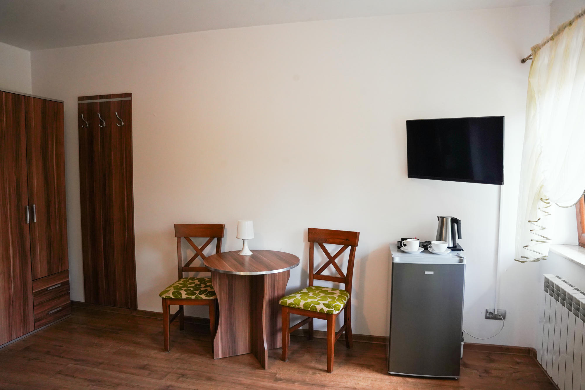 Pokój 2-osobowy to idealna propozycja dla par lub dwóch osób, które cenią sobie wygodę i kameralną atmosferę w malowniczym otoczeniu jezior. Ten przytulny pokój oferuje wszystkie niezbędne udogodnienia – od telewizora z płaskim ekranem i kanałami satelitarnymi, przez WiFi, po funkcjonalne wyposażenie takie jak szafa, lodówka, czajnik elektryczny oraz zestaw do przygotowania aromatycznej kawy lub herbaty. Łazienka z prysznicem zapewnia prywatność i świeżość, a pościel i ręczniki są przygotowane z myślą o pełnym komforcie gości. Dzięki ogrzewaniu pobyt jest komfortowy również poza sezonem letnim, a obecność parkingu sprawia, że wszystko, co potrzebne, jest na wyciągnięcie ręki.
