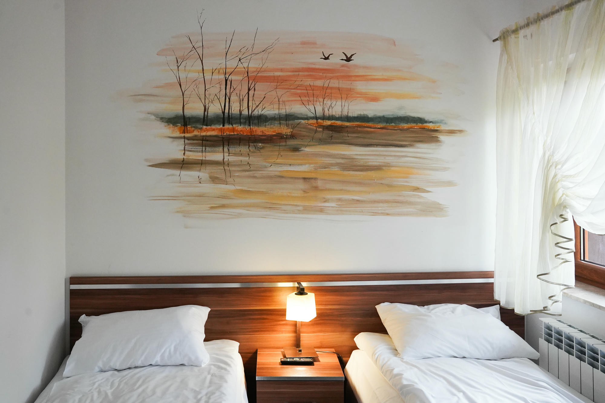 Pokój 2-osobowy to idealna propozycja dla par lub dwóch osób, które cenią sobie wygodę i kameralną atmosferę w malowniczym otoczeniu jezior. Ten przytulny pokój oferuje wszystkie niezbędne udogodnienia – od telewizora z płaskim ekranem i kanałami satelitarnymi, przez WiFi, po funkcjonalne wyposażenie takie jak szafa, lodówka, czajnik elektryczny oraz zestaw do przygotowania aromatycznej kawy lub herbaty. Łazienka z prysznicem zapewnia prywatność i świeżość, a pościel i ręczniki są przygotowane z myślą o pełnym komforcie gości. Dzięki ogrzewaniu pobyt jest komfortowy również poza sezonem letnim, a obecność parkingu sprawia, że wszystko, co potrzebne, jest na wyciągnięcie ręki.